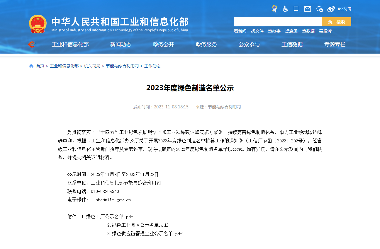11月8日,工業(yè)和信息化部公示了2023年度綠色供應(yīng)鏈管理企業(yè)名單,浙江臺華新材料股份有限公司位列榜中。