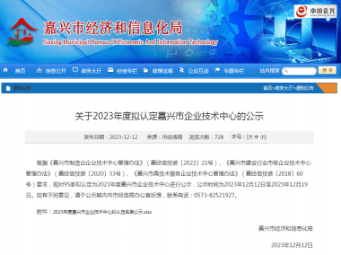 查看詳情子公司嘉華尼龍企業(yè)技術(shù)中心被認(rèn)定為2023年度嘉興市企業(yè)技術(shù)中心